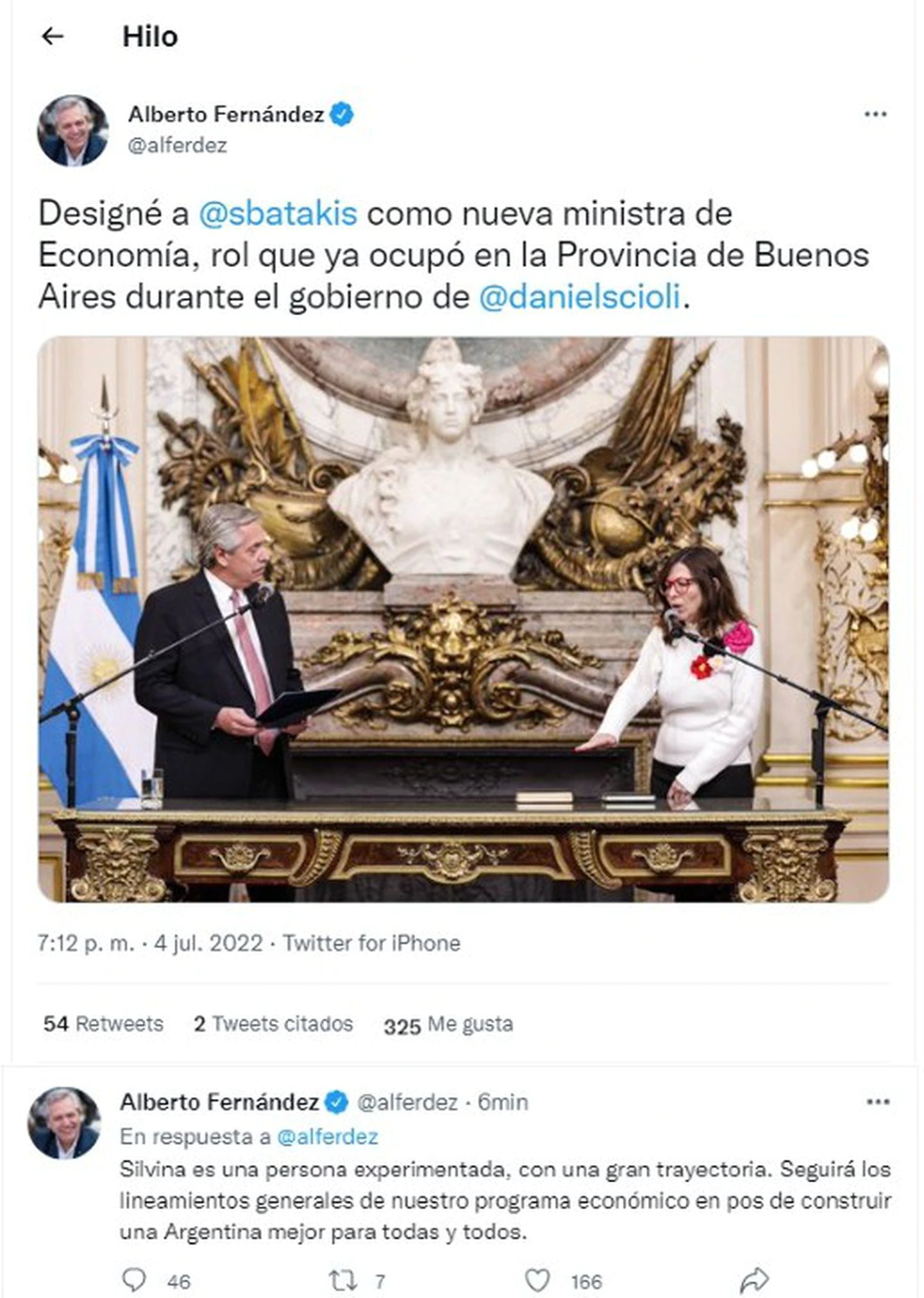 Alberto Fernández tuiteó sobre la designación de Batakis: «Es una persona experimentada»