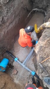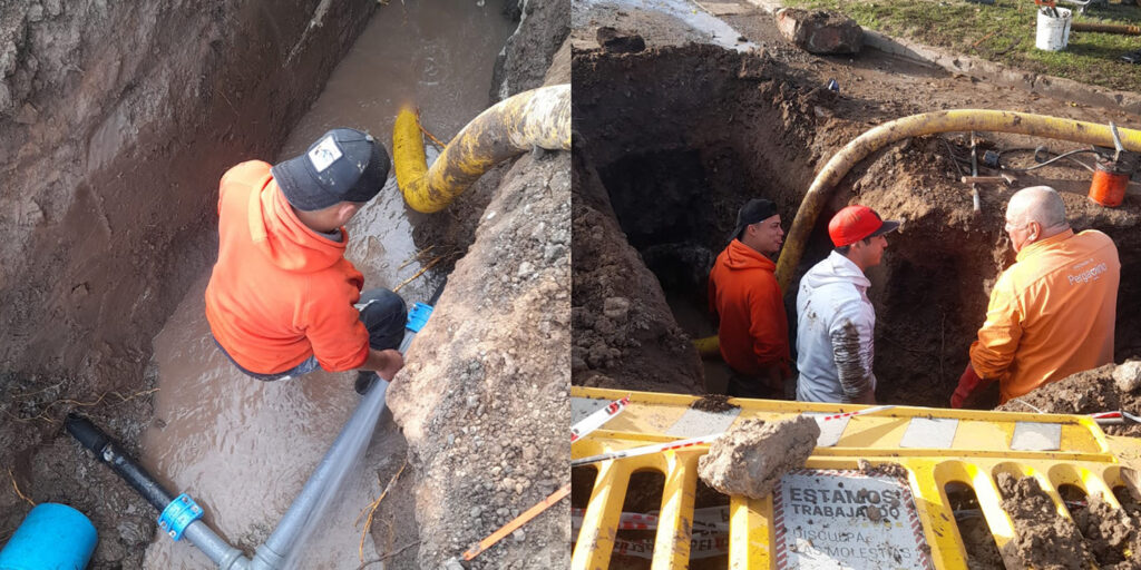 Luego del arreglo, los agentes llevaron a cabo el empalme de cañerías y el servicio ya se encuentra funcionando con normalidad.