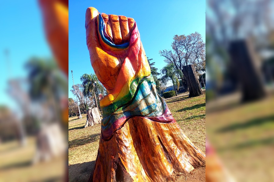 Primera talla finalizada. La diversidad. Inés Lorenzo y Patricia Cura trabajan en el proyecto «Paseo de Alicia», Programa Municipios por la Igualdad del Ministerio de la Mujer, Políticas de Género y Diversidad Sexual de la Provincia de Buenos Aires, que en Colón llevan a cabo la Dirección de Género con otras dependencias como la Dirección de Espacios Públicos, entre ellas.