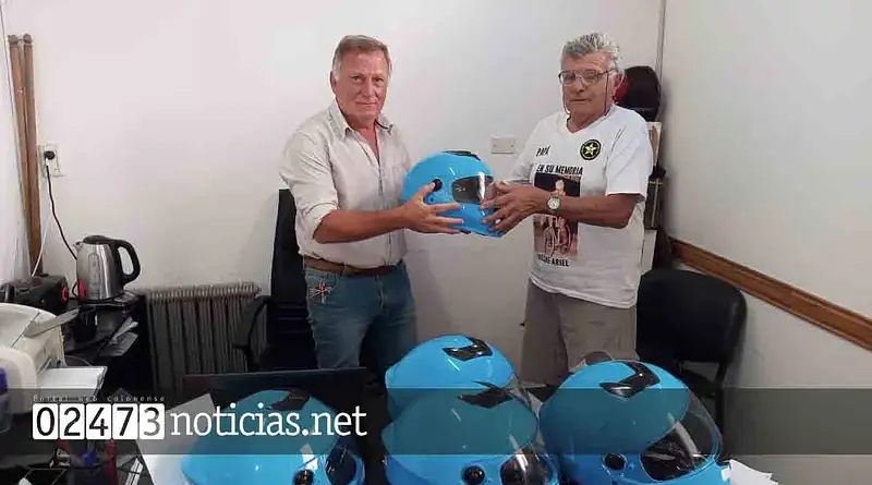 Representado por su vicepresidente Eduardo Vilches junto al coordinador Carlos Lavezzi, el grupo Estrellas Amarillas por la Memoria entregó cinco cascos al Secretario de Seguridad Marcelo Battaglia para ser destinados al personal de la Guardia Urbana que por ser época de verano estarán recorriendo las calles nuevamente en motos siguiendo con las acciones de la prevención en nuestra ciudad.
