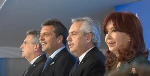 Tras finalizar el acto, el Presidente se acercó a los medios y dijo unas breves palabras. Al ser consultado sobre si iba a apoyar a Sergio Massa en la campaña, evitó hacer referencia directa: “Estamos hablando del gasoducto”. En el acto estuvieron el Gabinete en pleno, sindicalistas, intendentes, dirigentes sociales. Desde Juan Grabois, rival interno de Massa, hasta Pablo Moyano o Sergio Berni. Todos dejaron de lado sus diferencias en pos de lograr la foto de unidad. La necesidad electoral fue el gran ordenador.