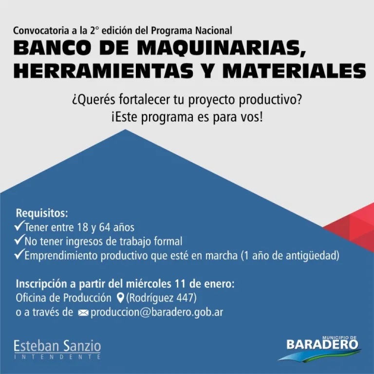 El Municipio de Baradero comunica que abrirá la convocatoria para el programa que busca favorecer y fortalecer la inclusión laboral y el desarrollo local. La inscripción comienza el miércoles 11 de enero.