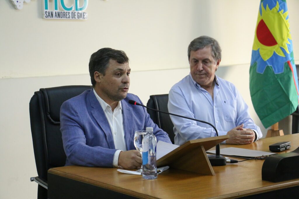 En el recinto de sesiones del H.C.D. de San Andrés de Giles el intendente Miguel Gesualdi habló a los presentes, ante la presencia del presidente del cuerpo deliberativo Gustavo Lennard, el senador provincial Facundo Ballesteros, el diputado provincial Carlos Puglelli, concejales, consejeros escolares, funcionarios del Departamento Ejecutivo, autoridades educativas, vecinos.