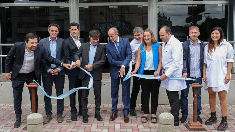 La foto oficial del corte de cinta la completaron el ministro del Interior y eventual presidenciable del cristinismo, Eduardo de Pedro; de Obras Públicas, Gabriel Katopodis; los ministros provinciales de Salud, Nicolás Kreplak; y de Ambiente, Daniela Vilar; el presidente de la Cámara de Diputados de la Provincia, Federico Otermín; la intendenta interina, Marina Lesci; y el secretario de Salud local, Mariano Ortega Soler. Casi todo el peronismo bonaerense, con sus líneas internas, en composé.