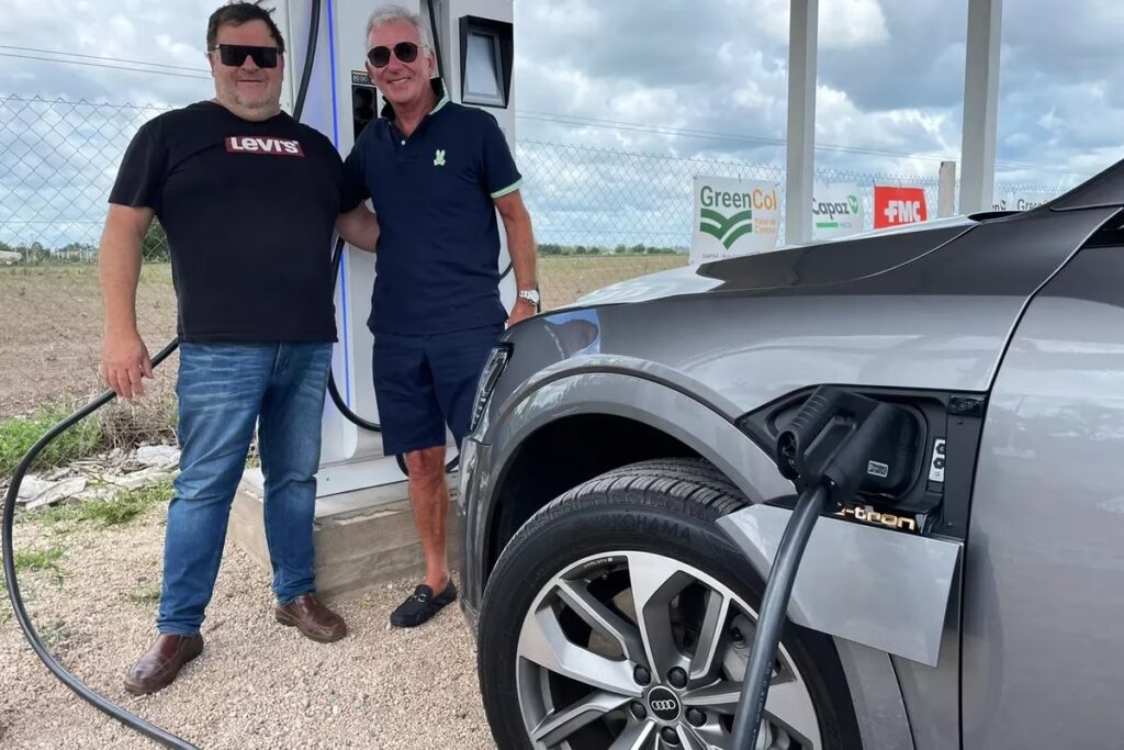 Propietario de un Audi e-tron 55 quattro, SUV 100% eléctrico, el Ingeniero Juan Ciminari se dedica a la producción de maní en la localidad de Alejandro Roca, a unos 550 kilómetros de distancia desde la Ciudad de Buenos Aires. Como la autonomía de su auto no le permitía hacer el trayecto completo con una sola carga de energía (según lo declarado por la marca llega hasta los 420 km), y en ese trayecto no disponía de un concesionario oficial para detenerse a recargar, Ciminari decidió instalar su propio cargador a mitad de camino entre Buenos Aires y Córdoba.