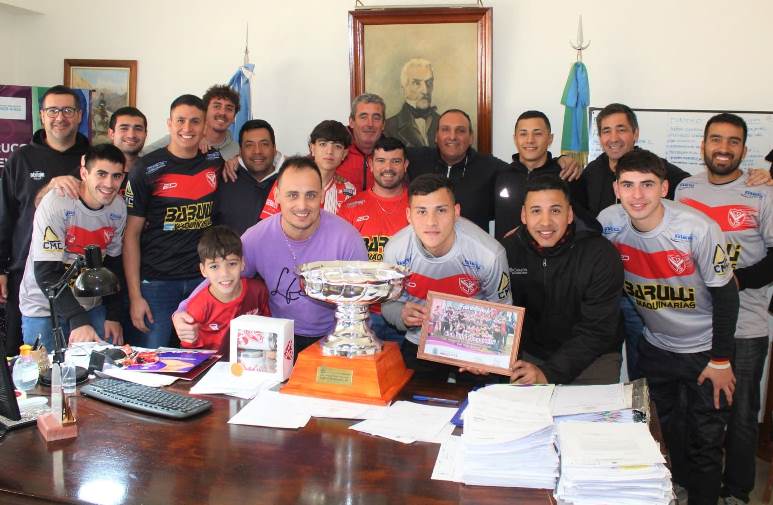 El intendente Javier Olaeta, recibió en su despacho al plantel de primera división de fútbol del Club Villa Sanguinetti, campeón del Torneo Apertura Municipalidad de Arrecifes, Copa Fernando “Poroto” Bernasconi.