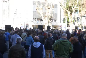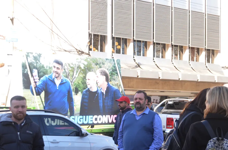 Aunque el Jefe Comunal de Olavarría no se encontraba en el Palacio San Martín – al igual que con en un reciente visita de Axel Kicillof tenía agenda en las localidades rurales de Recalde y Espigas-, llamativamente circuló, en dos oportunidades, un vehículo que transportaba una gigantografía con la imagen de Ezequiel Galli, Diego Santilli y Horacio Rodriguez Laarreta, que despertó silbidos y abucheos entre la militancia halcón.