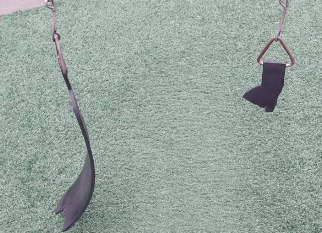 Personal municipal que recorrió la zona encontró diversos destrozos y roturas de juegos y del césped sintético colocado en el lugar.