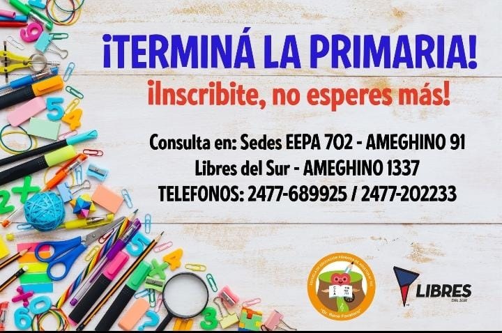 La agrupación política Libres del Sur promociona públicamente su local partidario para dar clases y completar los estudios Primarios a personas mayores de edad en Pergamino.