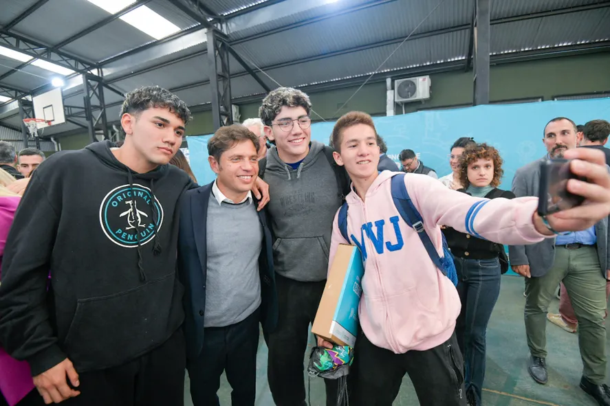 Kicillof estuvo en Sarmiento como parte de una mini gira por la segunda sección, que lo tuvo antes en Baradero, para entregar 217 computadoras a estudiantes de cinco instituciones secundarias.