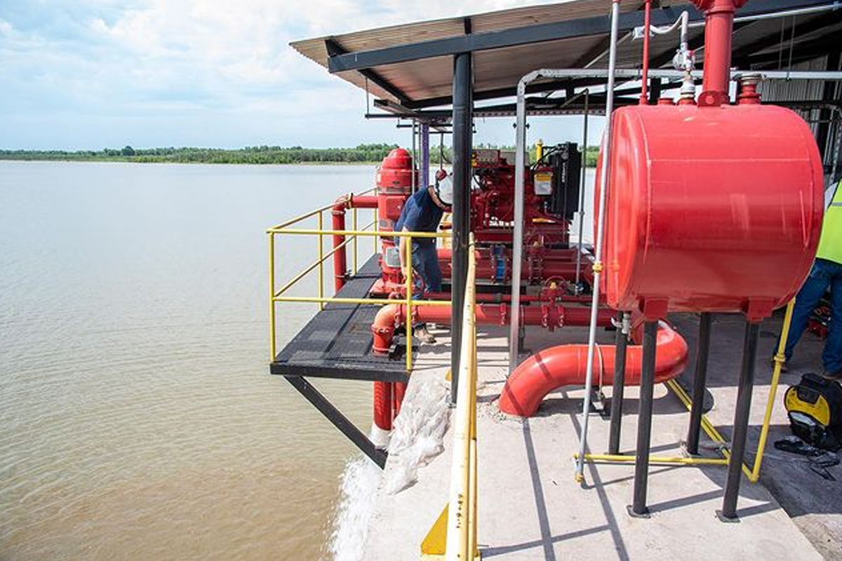 El tendido de más de 500 metros recorre de extremo a extremo el muelle y está conectado con la sala de bomba ubicada en la punta sur de la red. Desde ese lugar se da impulso al agua que se toma desde el río.