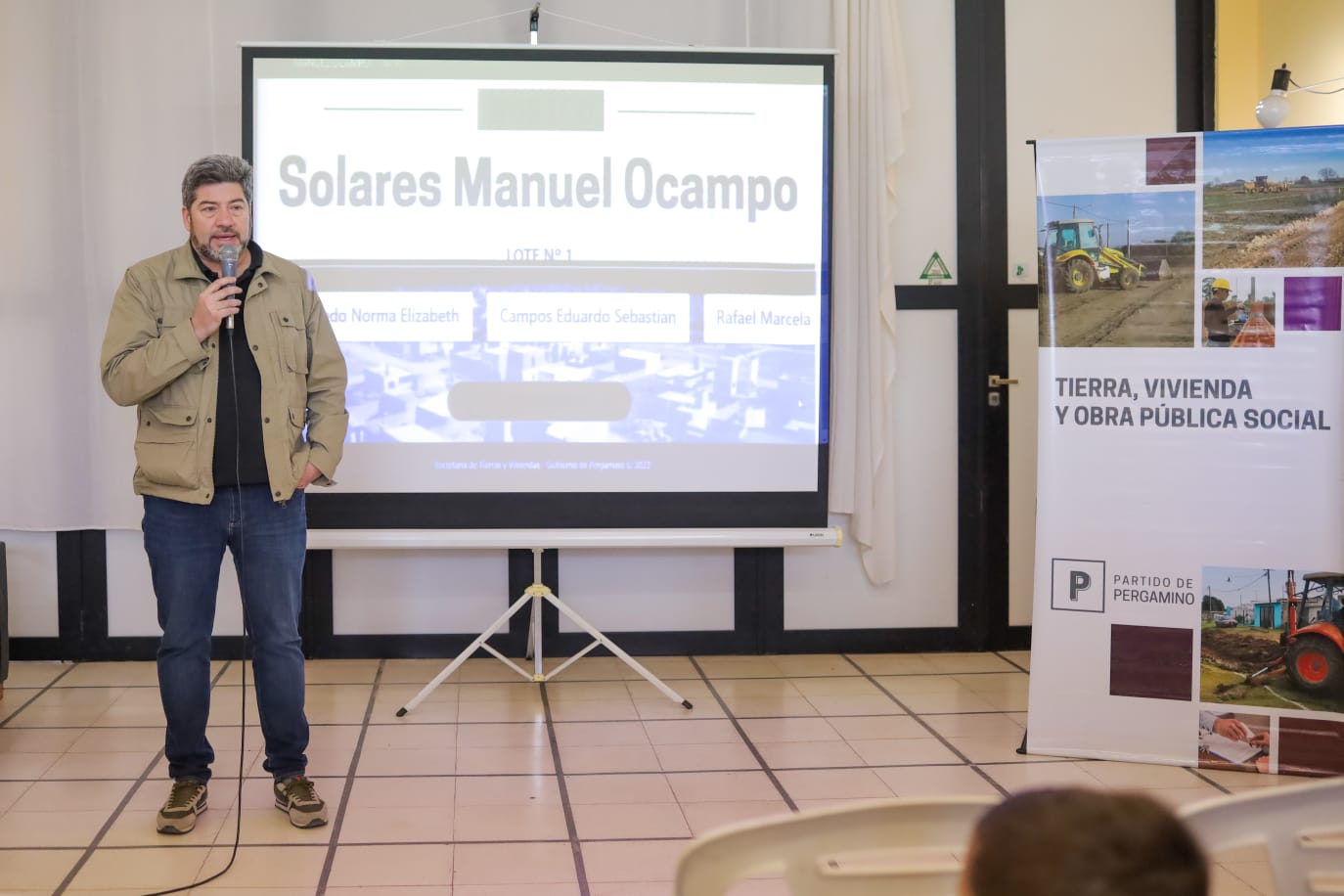 “Ocampo es el pueblo donde más lotes con servicios hemos podido generar. Así que para nosotros es una alegría enorme volver a estar hoy acá. Es un Programa que está basado en dos pilares fundamentales, que tienen que ver, por un lado con la solidaridad, porque lo que ocurre es que cuando ustedes paguen por su terreno, eso va a permitir que otras familias que siguen esperando en este pueblo, o en algún lugar del Partido de Pergamino, tengan las posibilidades de adquirir un nuevo lote con servicios. El otro eje es el compromiso, porque ustedes acceden al cumplimiento del pago de las cuotas como también a la construcción de la vivienda. Por eso decimos que la Municipalidad no está entregando terrenos, está entregando oportunidades”, señaló Batallanez.